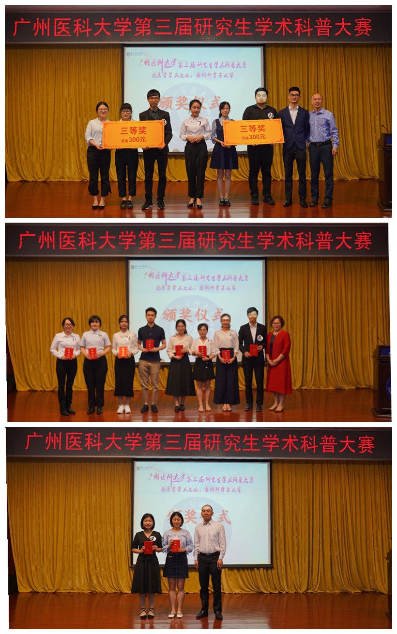 第三届研究生学术科普大赛决赛在番禺校区图书馆报告厅隆重举行,汇聚了来自南方医科大学、广州中医药大学和本校各二级学院的优秀参赛者。本届学术科普大赛增加初赛筛选环节、英文演讲专场,我院研究生积极响应,院领导亦十分重视,为参赛同学组织了赛前演练和专家指导。