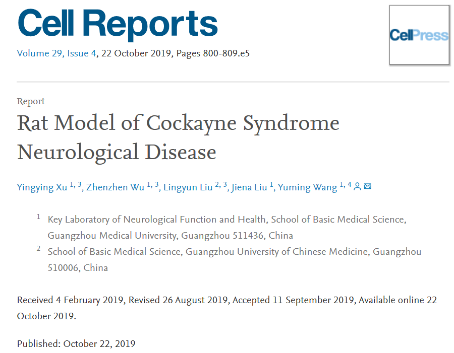 神经科学实验室王玉茗教授团队在儿童罕见病科凯恩氏综合症研究领域取得新突破