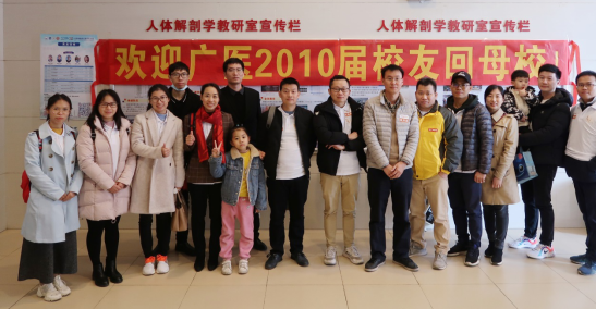 最后,蔡老师代表教研室向校友们赠送了定制纪念礼物U盘,并与他们及其家属在解剖楼合影留念。实地了解母校解剖学教育的发展和遗体捐献对医学教育作用,对校友们为广医的发展建言献策具有重要意义。