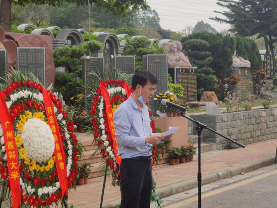 玉烛遗体捐献志愿者协会学生代表在我院蔡龙秋老师、杨员老师的带领下与遗体捐献志愿者家属一同前往中华永久墓园,参加由广州市红十字会主办的清明追思活动。
