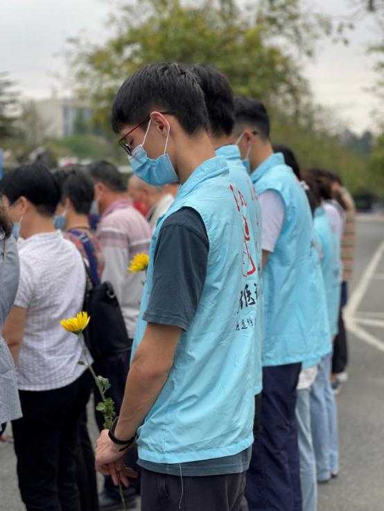 慎终追远,无声悼念。全体人员默哀三分钟,思念与感恩化作无形的飞鸟在寂静的蓝天下盘旋。