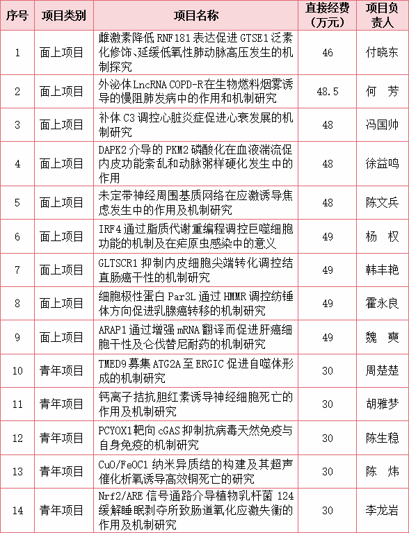 近日,国家自然科学基金委员会公布2024年集中期申报项目评审结果,我院获立项14项,获资助金额584.5万元,资助率15.9%。其中,付晓东教授等9人获得面上项目立项资助,周楚楚副教授等5人获得青年项目立项资助。