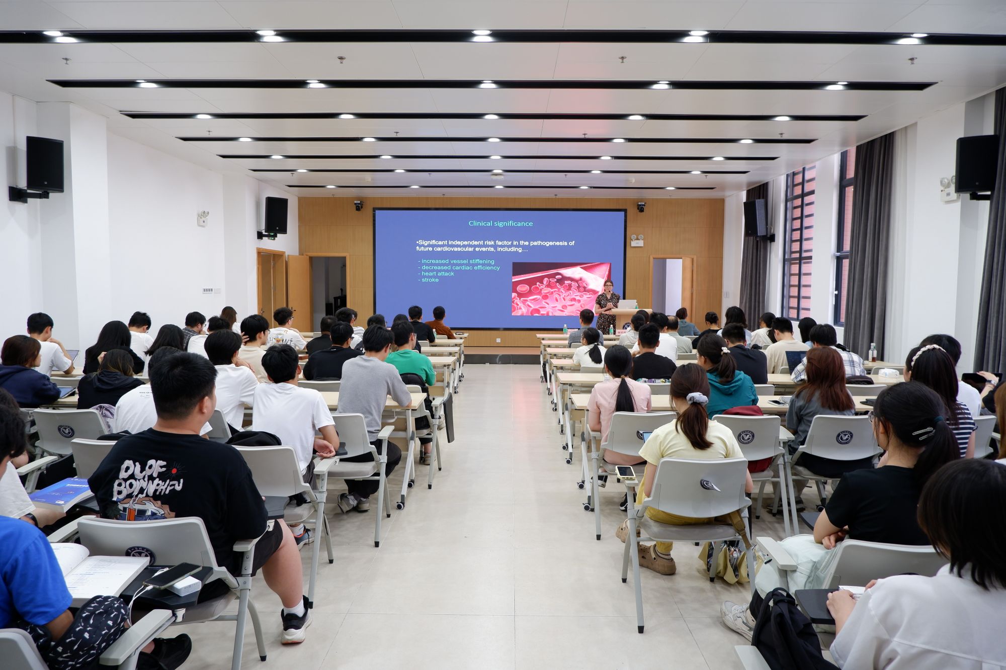 系主办的首届国际合作课程系列活动。期间,Vicky教授为我校师生分享了心血管疾病研究的前沿知识,并与校领导及相关职能部门负责人开展交流座谈,参观了校园及附属医院,开启了一场文化交流与学术合作之旅。