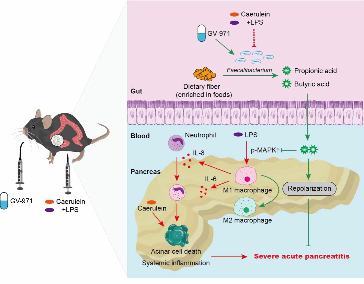 刘金保教授团队在Nature Communications上发表了题为“GV-971 prevents severe acute pancreatitis by remodeling the microbiota-metabolic-immune axis”的文章,该研究在重症急性胰腺炎小鼠模型中发现GV-971可通过重塑肠道菌群-代谢-免疫轴阻断急性胰腺炎重症化。
