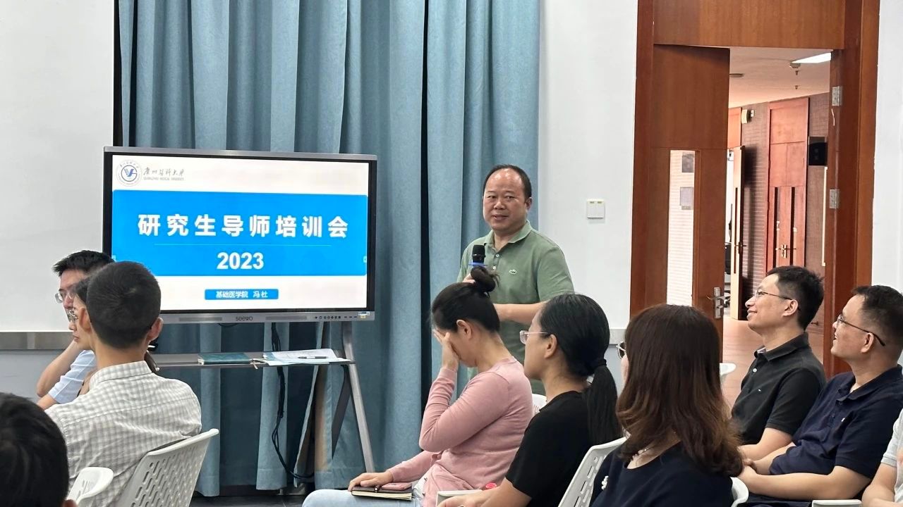 于9月13日上午在番禺校区A3-604智慧课室召开了2023年研究生导师培训会。学院领导班子及全体研究生导师参加本次会议。会议由学院副院长冯杜教授主持。