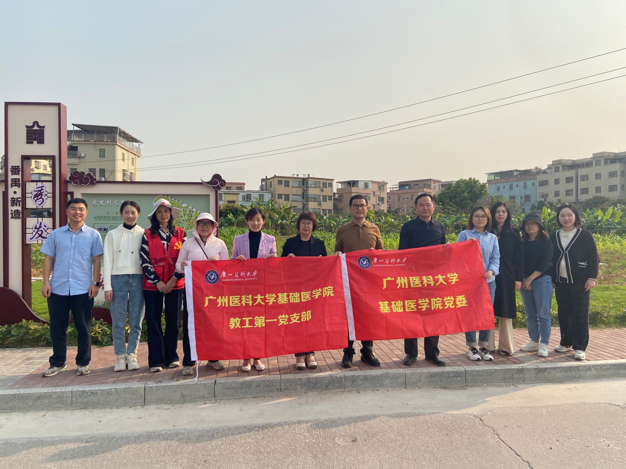 4月3日,动漫屋 教工第一党支部组织党员及学生志愿者前往番禺区秀发村开展“除草护绿,共建美丽乡村”活动。师生与村民紧密协作,对村内公共绿地、道路两侧及河道周边的杂草、枯枝进行清理,助力打造整洁宜居的乡村环境。