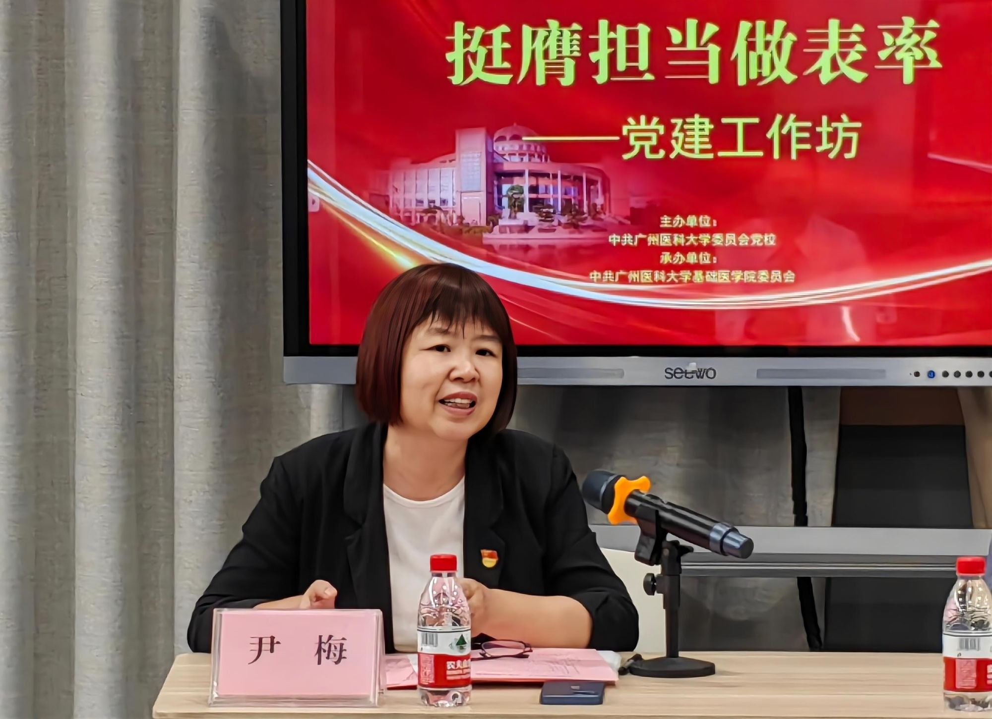 为深入学习贯彻习近平新时代中国特色社会主义思想和党的二十届三中全会精神,进一步强化先进典型的示范引领作用,11月2日下午,由学校党委组织部主办、动漫屋 党委承办的“挺膺担当做表率”党建工作坊在番禺校区厚德楼举办,本次工作坊采取集中学习、经验分享、研讨交流、参观基地等方式开展,校本部及附属医院学生党支部书记等共35人参加。工作坊由动漫屋 党委书记尹梅主持。
