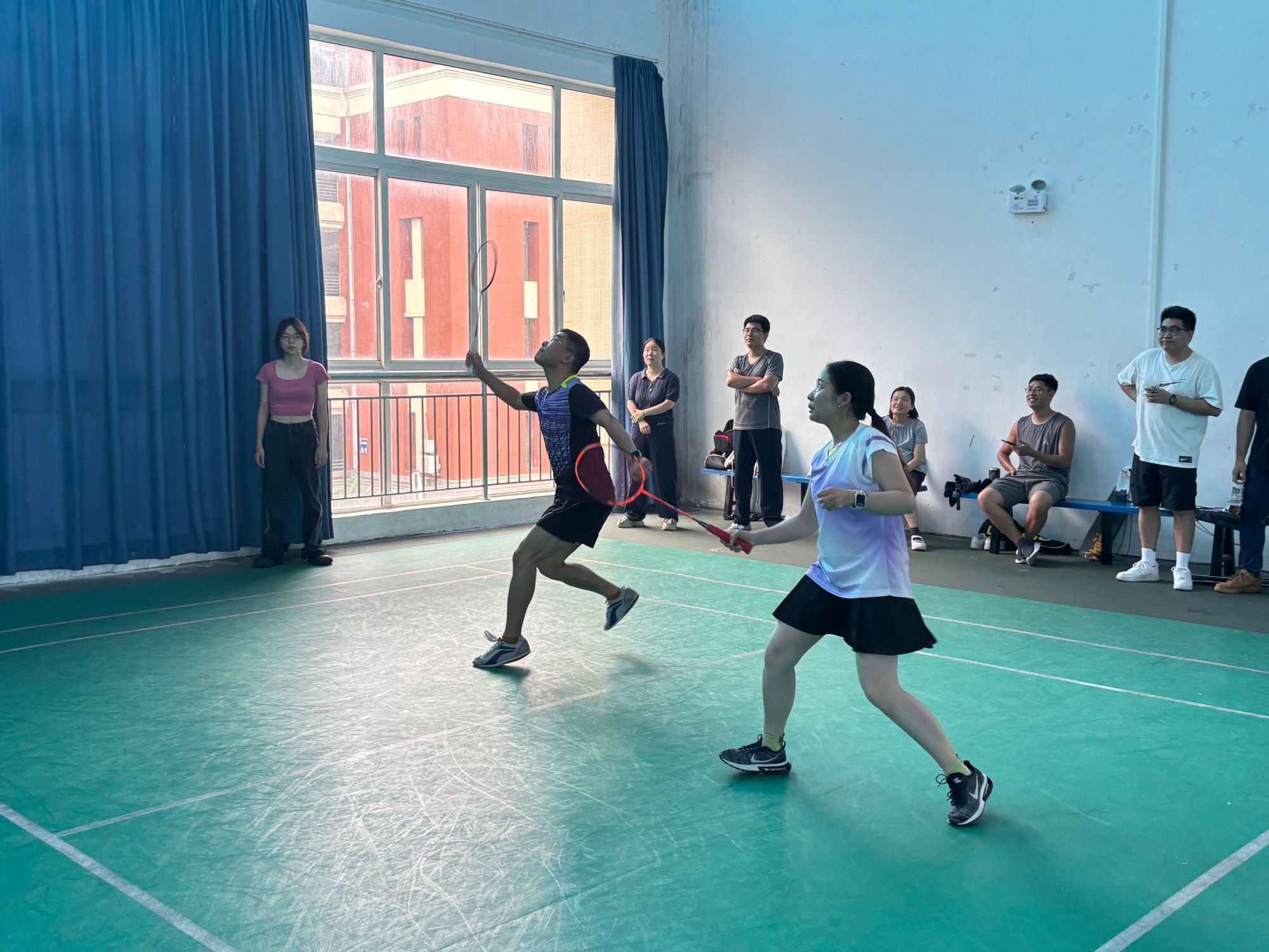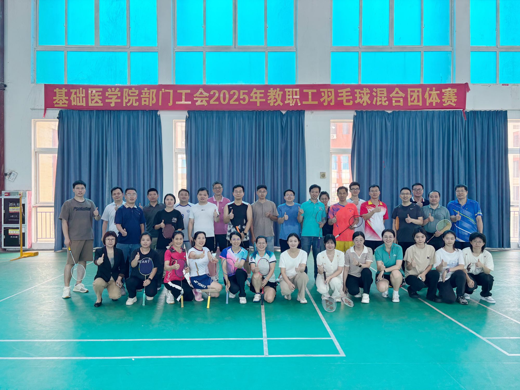 为活跃校园体育文化氛围,提高教职工的身体素质,增进老师之间的友谊,2025年6月,动漫屋 部门工会举办了一场别开生面的羽毛球教职工混合团体赛,比赛共有9支参赛队报名参加。比赛秉持着“友谊第一,比赛第二”的理念,选手们青春自信,拉拉队员热情洋溢,现场气氛热烈,欢声笑语不断。