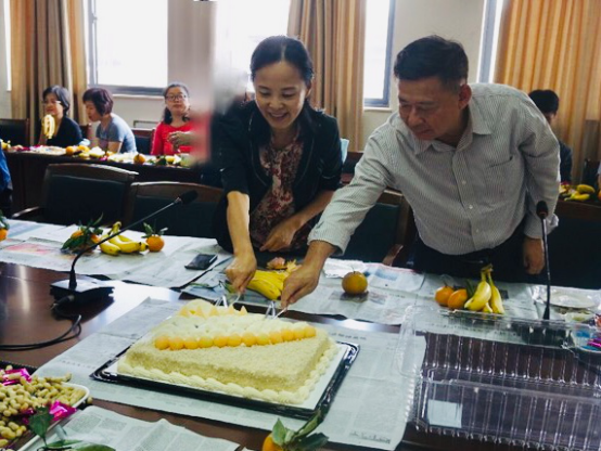 活动伊始,党总支书记龙大宏与院长马宁芳分别致辞,向与会教工致以诚挚问候,并向新进教工殷殷寄语。学院部门工委及办公室精心筹备了生日蛋糕、果点小食等,伴随着轻松愉快的生日歌,大家在书记和院长带领下进行切蛋糕仪式,气氛活跃温馨。分尝糕点的喜悦声,同事畅谈的欢乐声,洋溢在现场各处角落。