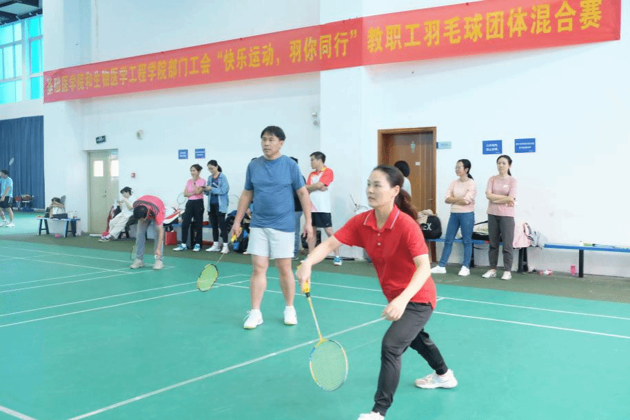 和生物工程学院部门工会联合举办了一场别开生面的羽毛球教职工混合团体赛,比赛共有八个小组积极参加。比赛秉持着“友谊第一,比赛第二”的理念,选手们青春自信,拉拉队员热情洋溢,现场气氛热烈,欢声笑语不断。