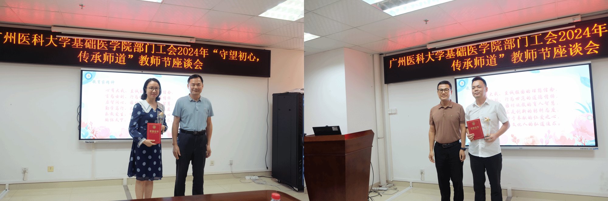 学院领导班子为颁发优秀教师荣誉证书和纪念品