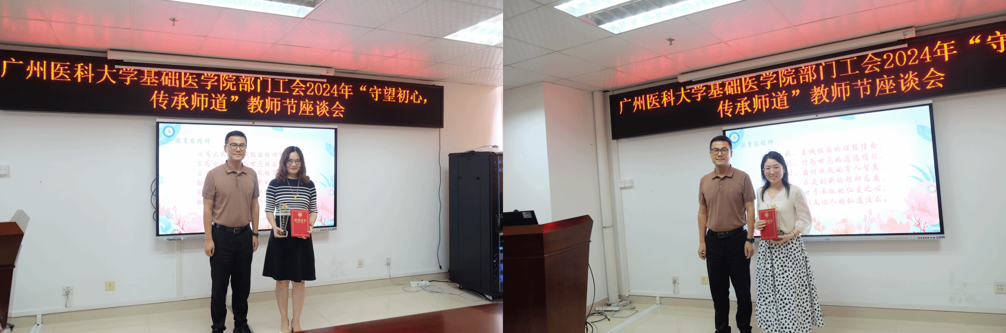 举办2024年“守望初心,传承师道”教师节座谈会。此次活动邀请院级优秀教师代表、高层次人才代表、民主党派代表、2024年新入职教师参加。会上,学院党委书记尹梅代表学院领导班子向老师们致以节日祝福并勉励老师们大力弘扬教育家精神,做新时代好老师。冯杜副院长介绍院级优秀教师遴选情况并宣读院级优秀教师名单,随即进行颁奖仪式。