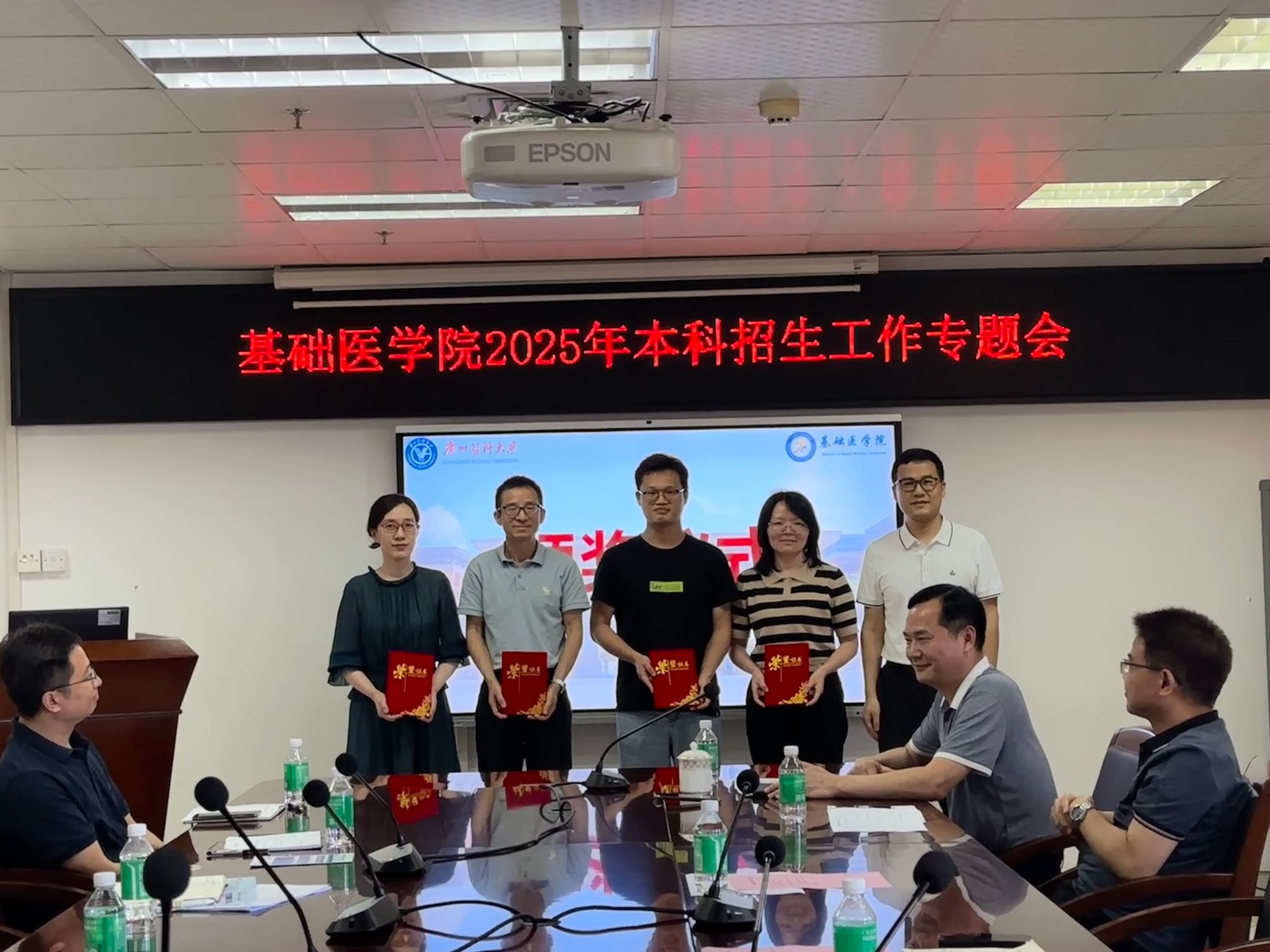 会上,学院党委副书记章喜明系统总结了2024年招生工作成效,并对2025年招生工作作出具体部署。他指出,2025年的招生工作将重点推进教授团队走进优质生源基地中学开展宣讲,通过广州国家实验室参访、校园开放日等形式展示学院办学特色,并将在高考后设立多地咨询点为考生提供个性化指导。学院将充分发挥本-硕-博贯通培养体系和5+X一体化培养模式的优势,全方位提升招生宣传效果。