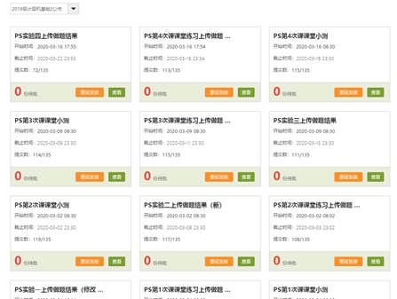 在课中教学之后,学生需要对知识进行巩固,把教学内容完全消化吸收,这需要进行相应的练习和实践,课后的实验训练是对学生进行巩固复习也是实现对知识的进一步内化的关键部分。老师发布的实验作业与课堂练习相比,难度和题量稍大,提交截止日期一般设定在周末23点之前提交,可以让学生充分利用课余时间进行深入的复习和探究。同时,教师也可以随时随地的指导学生完成实验题目。