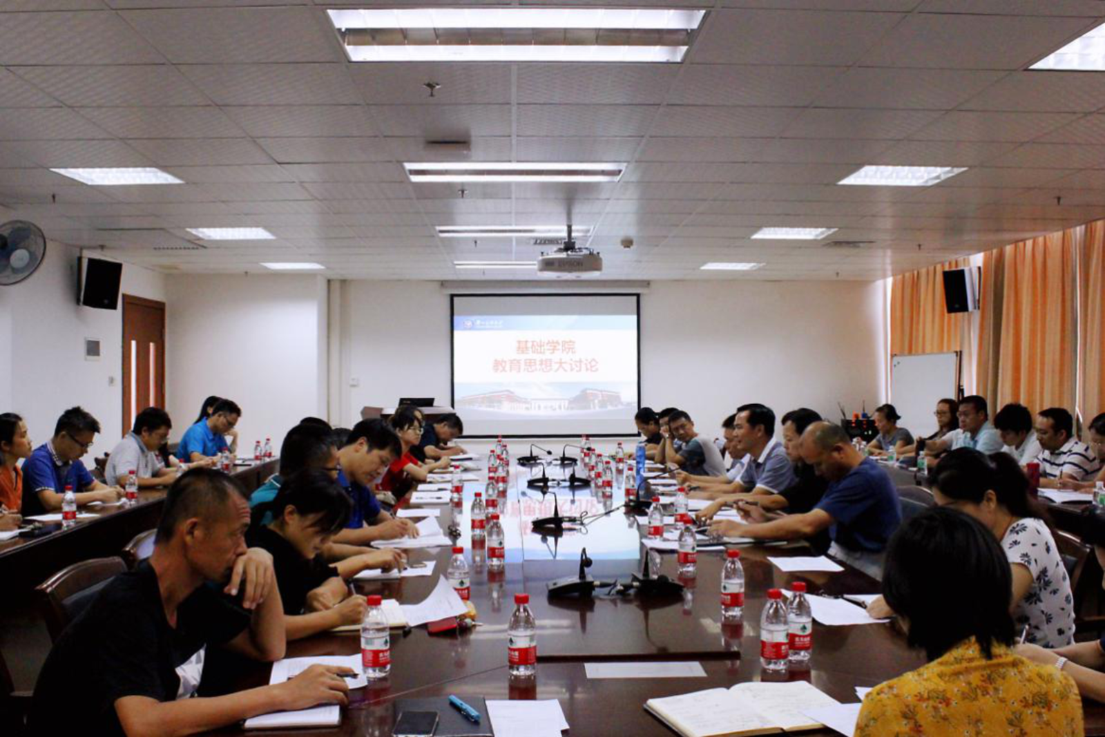 基础学院根据学校开展本科教育思想大讨论活动实施方案,于9月28日上午在学院层面召开“以本为本 理念先行----深化教育综合改革,加强本科人才培养质量”为主题的教育思想大讨论,各系和科室主任、党支部书记、督导组专家、教师及学生代表共50多人参加了本次专题讨论会。
