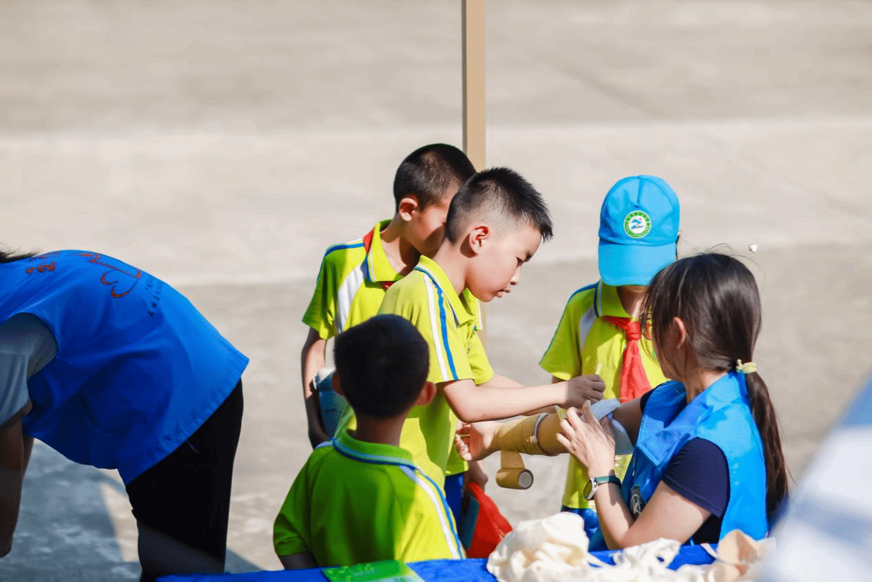 此外,科普团队还安排了心肺复苏技能演示、运动损伤急救包扎技能演示以及互动体验,通过实践操作激发小学生对科学的兴趣和好奇心,普及基础科学知识,共同为校园的运动安全保驾护航。