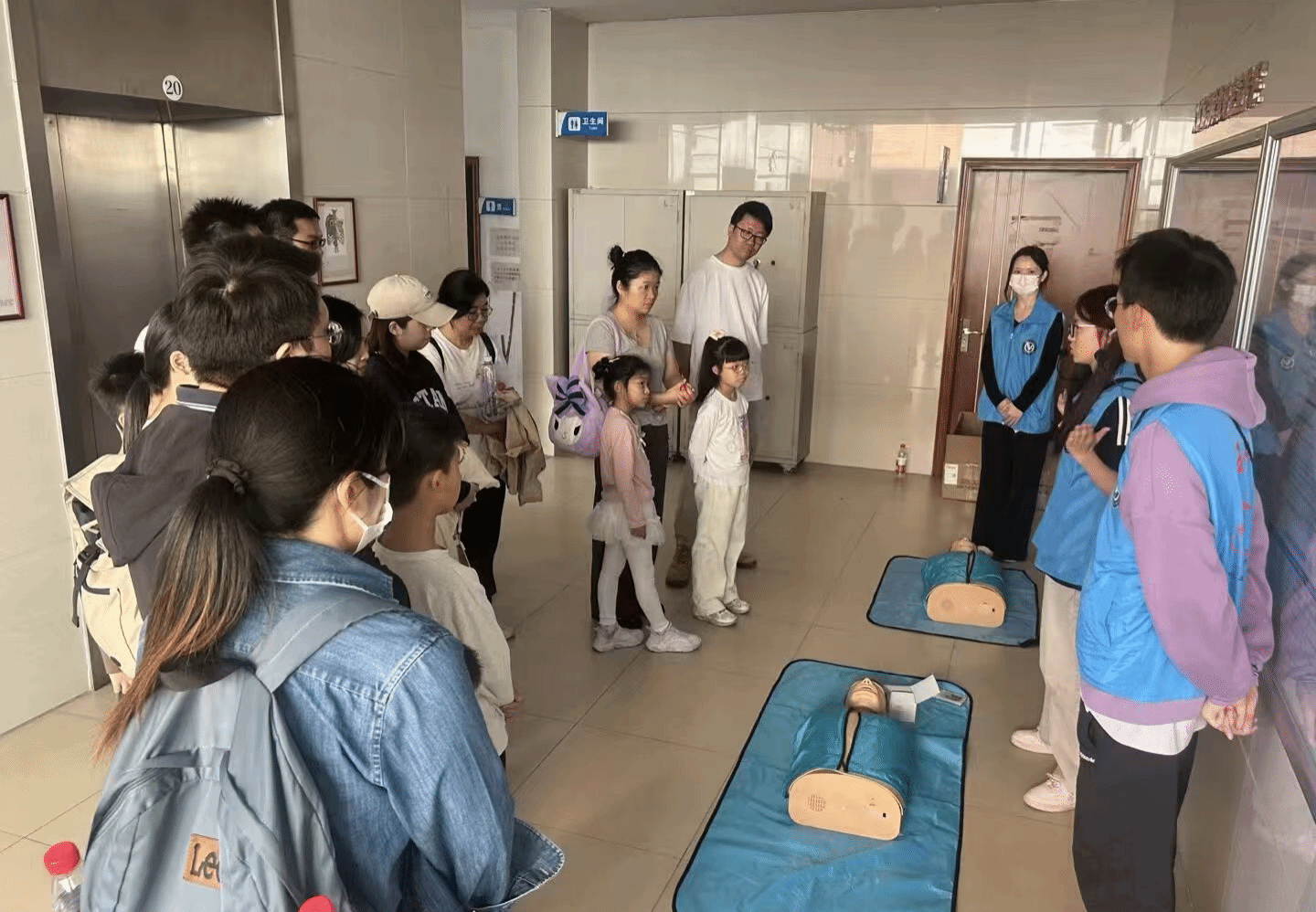 在实践环节,市民们分为两组,交替参与了科普讲解与心肺复苏培训。