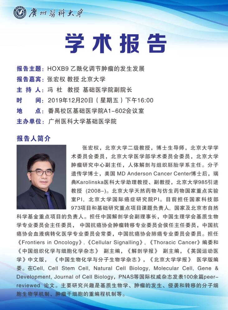 学术讲座--HOXB9 乙酰化调节肿瘤的发生发展