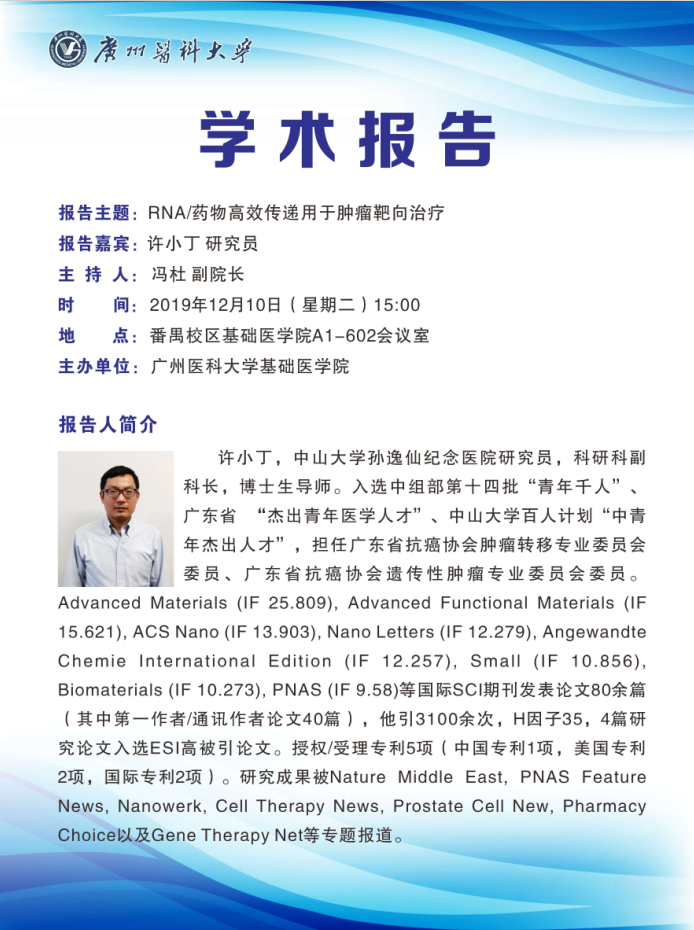 学术讲座-RNA药物高效传递用于肿瘤靶向治疗