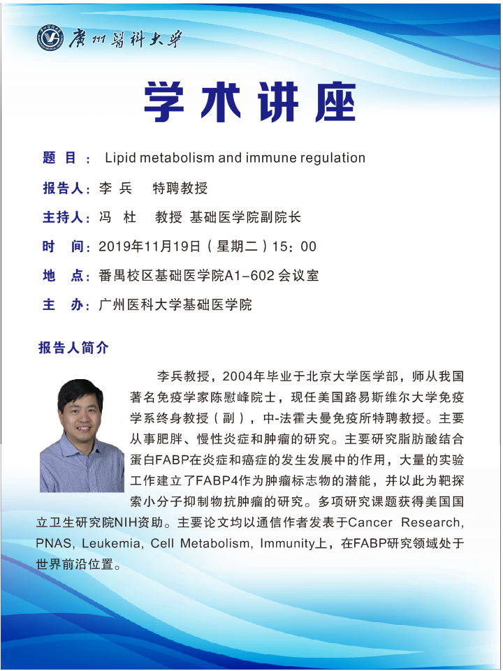 学术讲座--Lipid metabolism and immune regulation