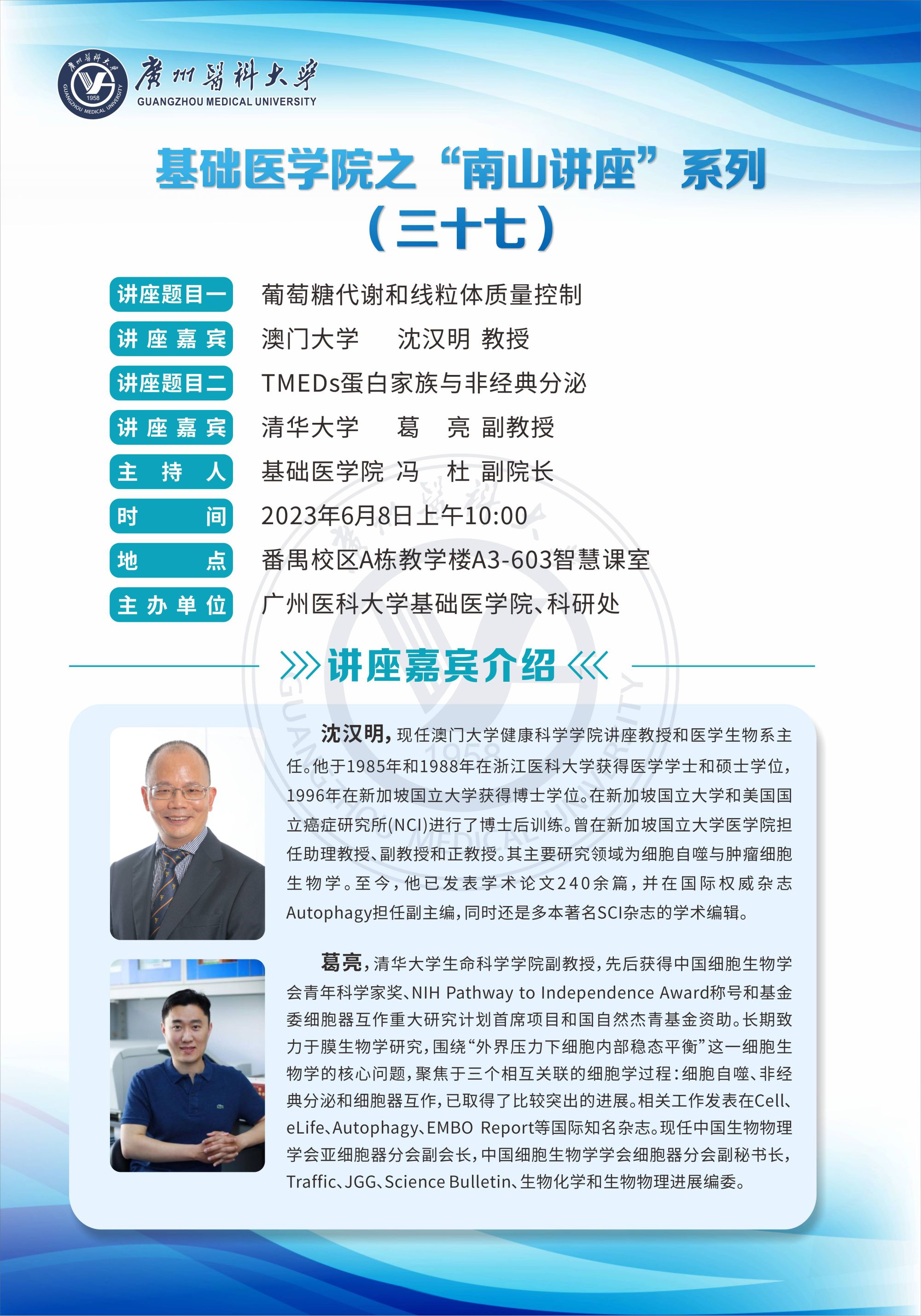 学术讲座--葡萄糖代谢和线粒体质量控制&TMEDs蛋白家族与非经典分泌