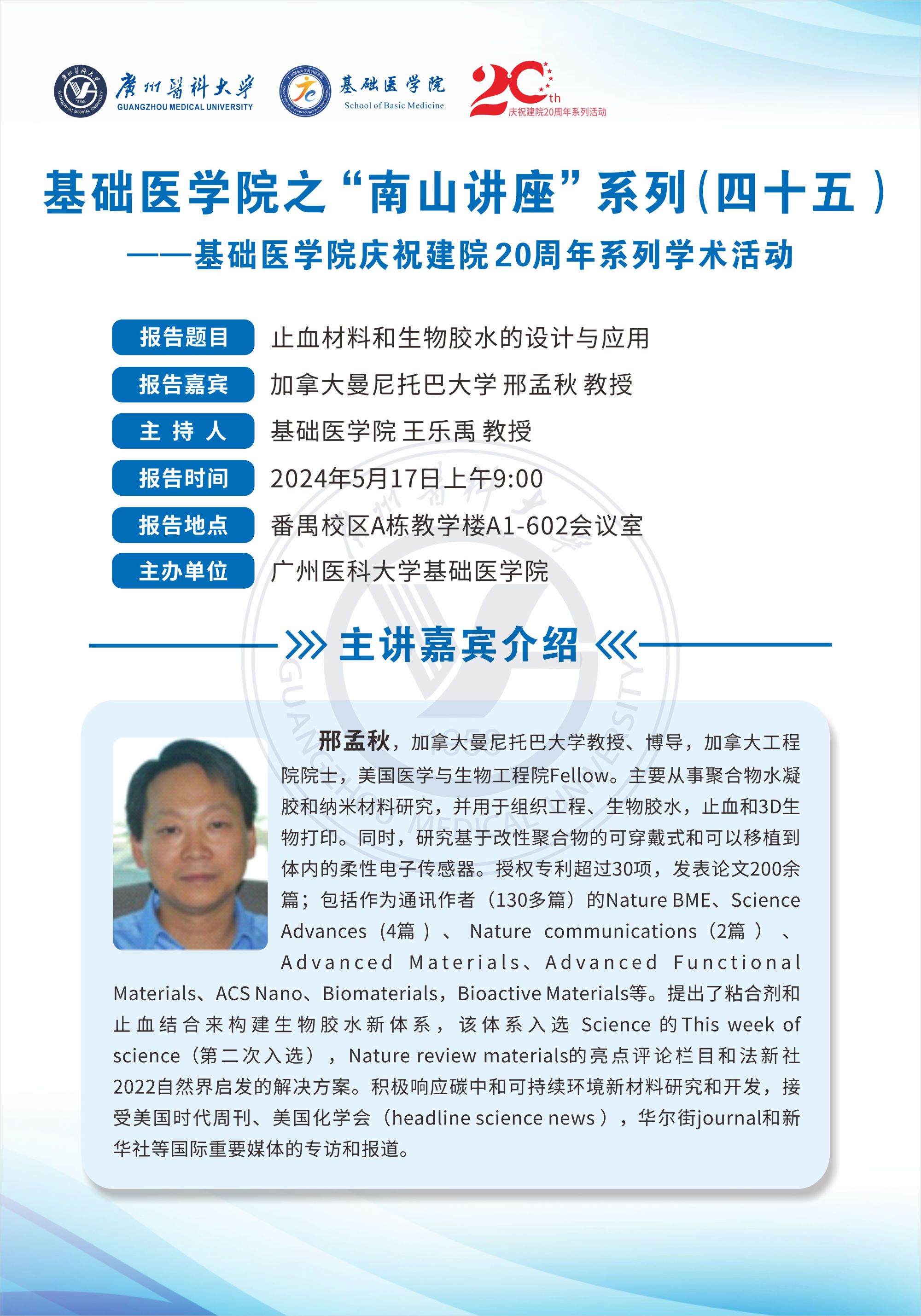 学术讲座——杂化生物材料及其肿瘤精准诊疗性能